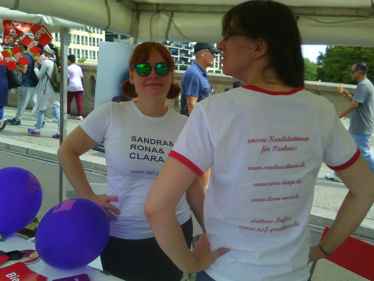 Wir sind bald am Ziel: Nun sammeln wir all unsere Kräfte, um für unsere Kandidatinnen, Kandidaten und Michael Müller zu kämpfen. In den letzten vier Wochen vor dem Wahltag, dem 18. September 2016, zeigen wir nun unsere geballte Frauenpower an Infoständen, bei Besuchen in der Pankower Frauenträgerinnenlandschaft und medienwirksam im Netz. Wer uns bei nächster Gelegenheit unterstützen möchte, hier sind unsere nächsten Termine: